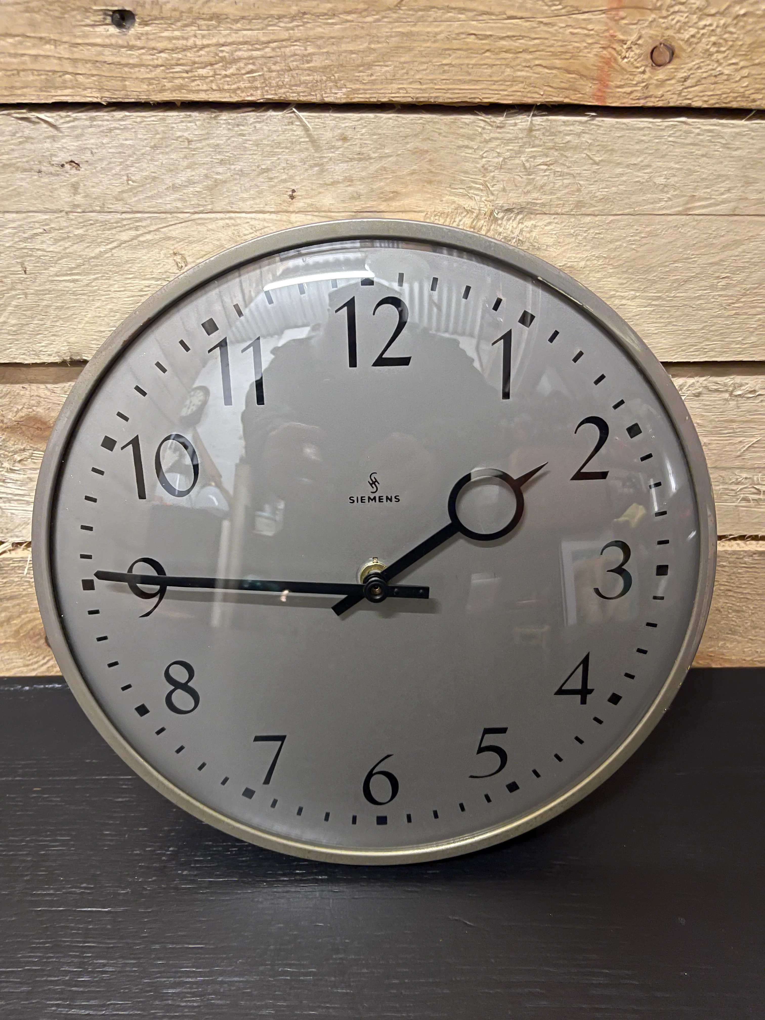 Metallic steel frame with steel clock face & unique clock hands which were renowned for Siemens clocks.