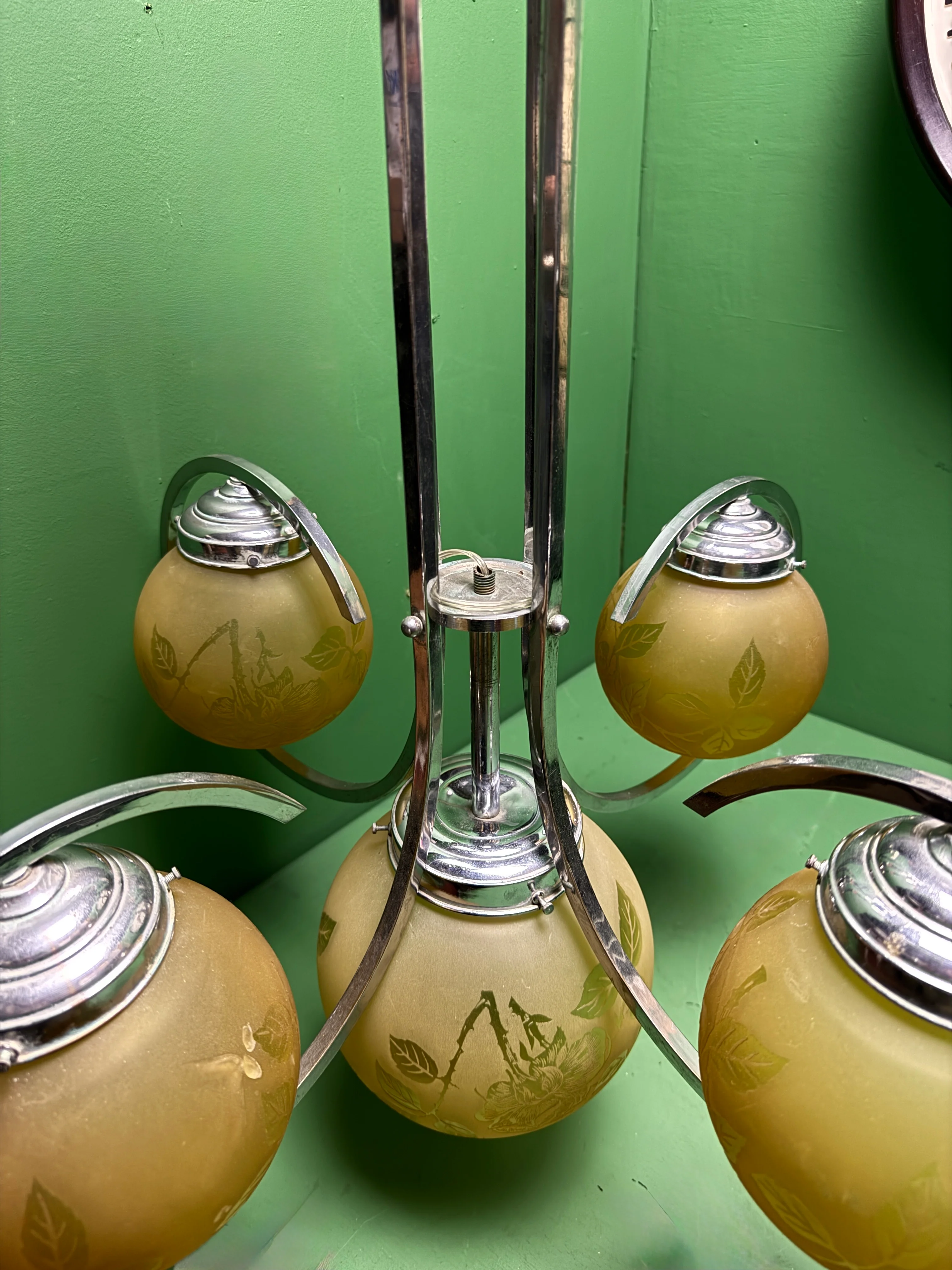 French Art Deco Chandelier Light with five globes by Sprat