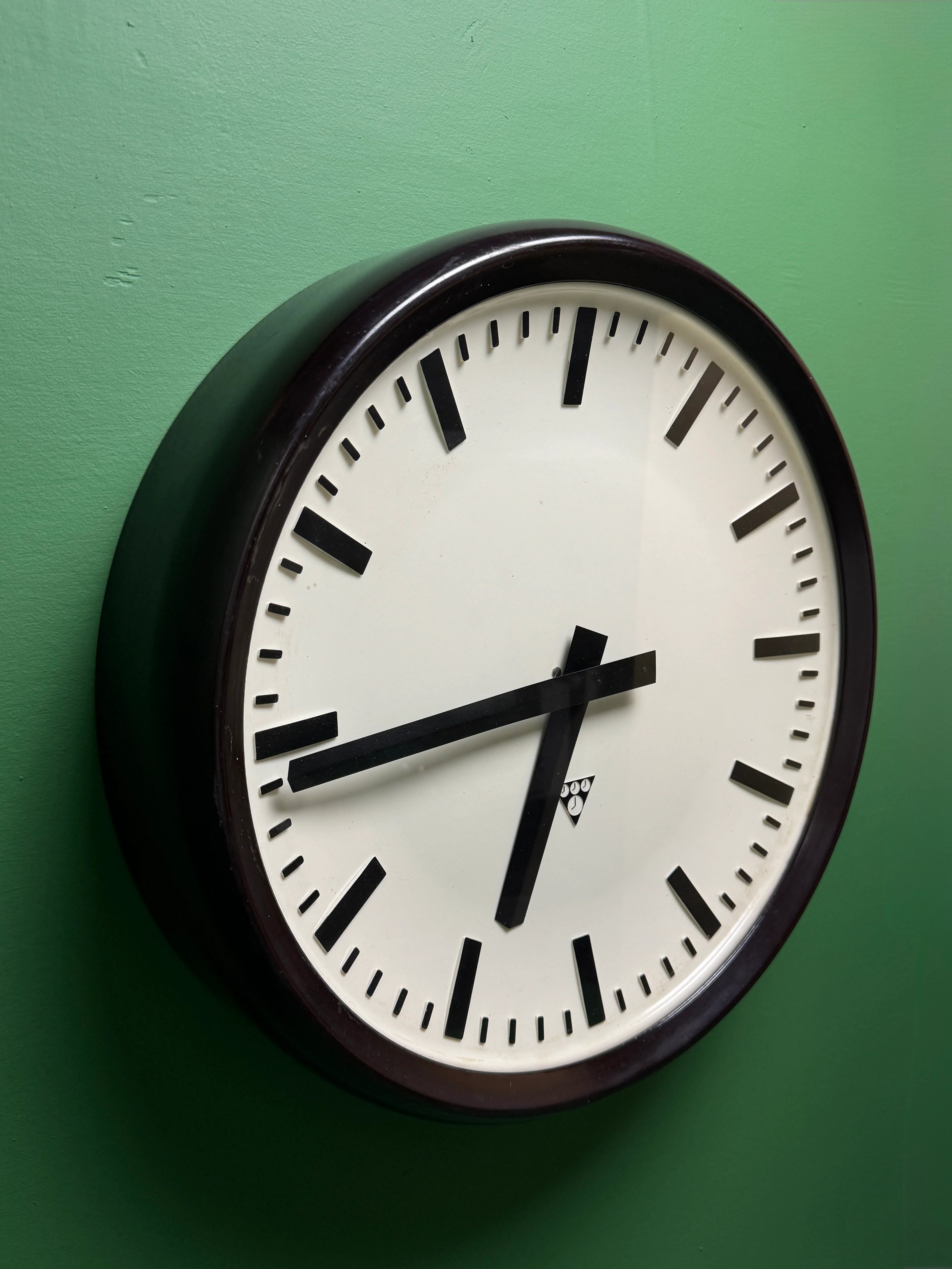 Large 1940s Bakelite Pragotron communist era Czech industrial clock.