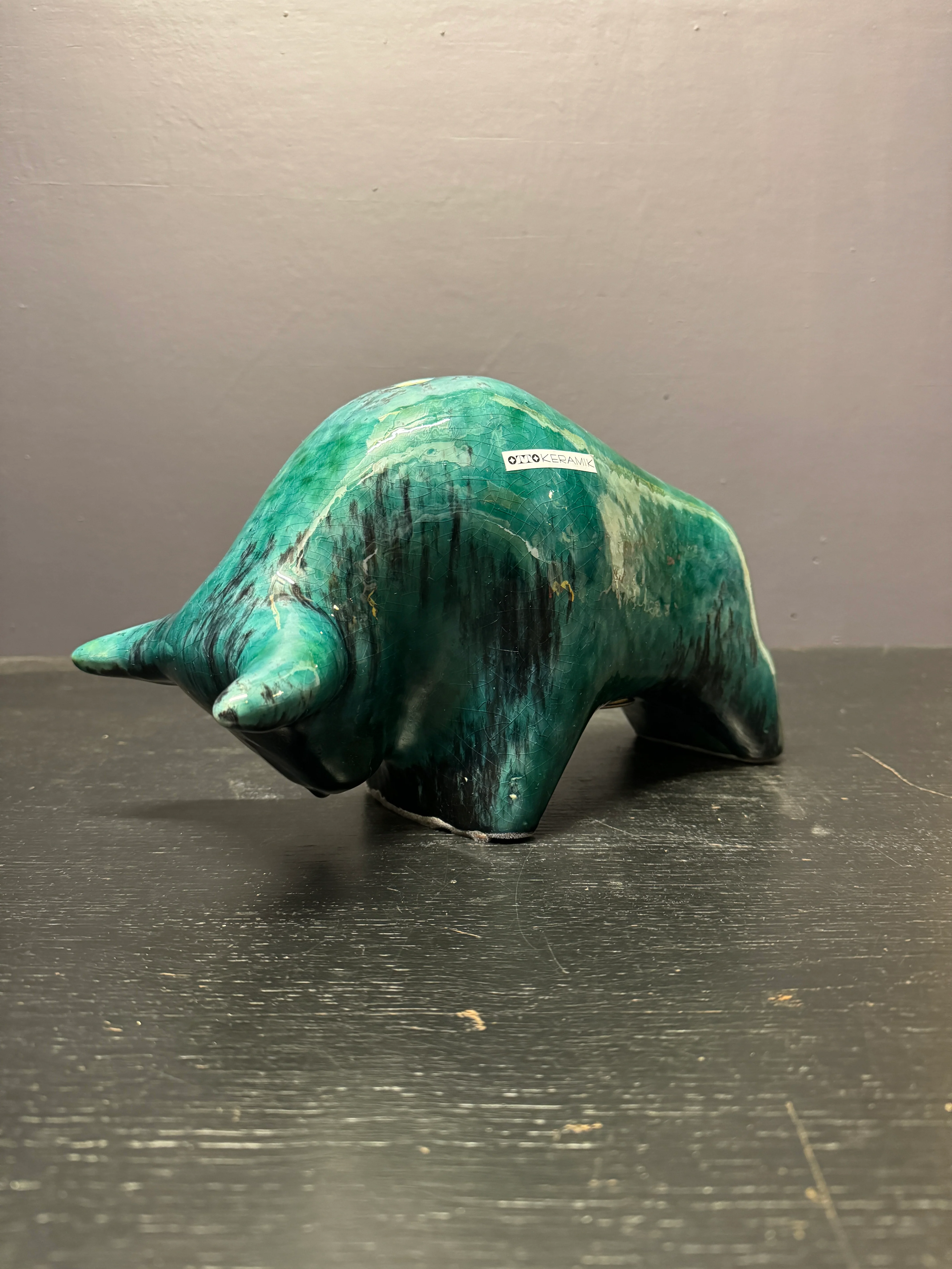 Otto Keramik Ceramic Bull Money Box West German Pottery Fat Lava