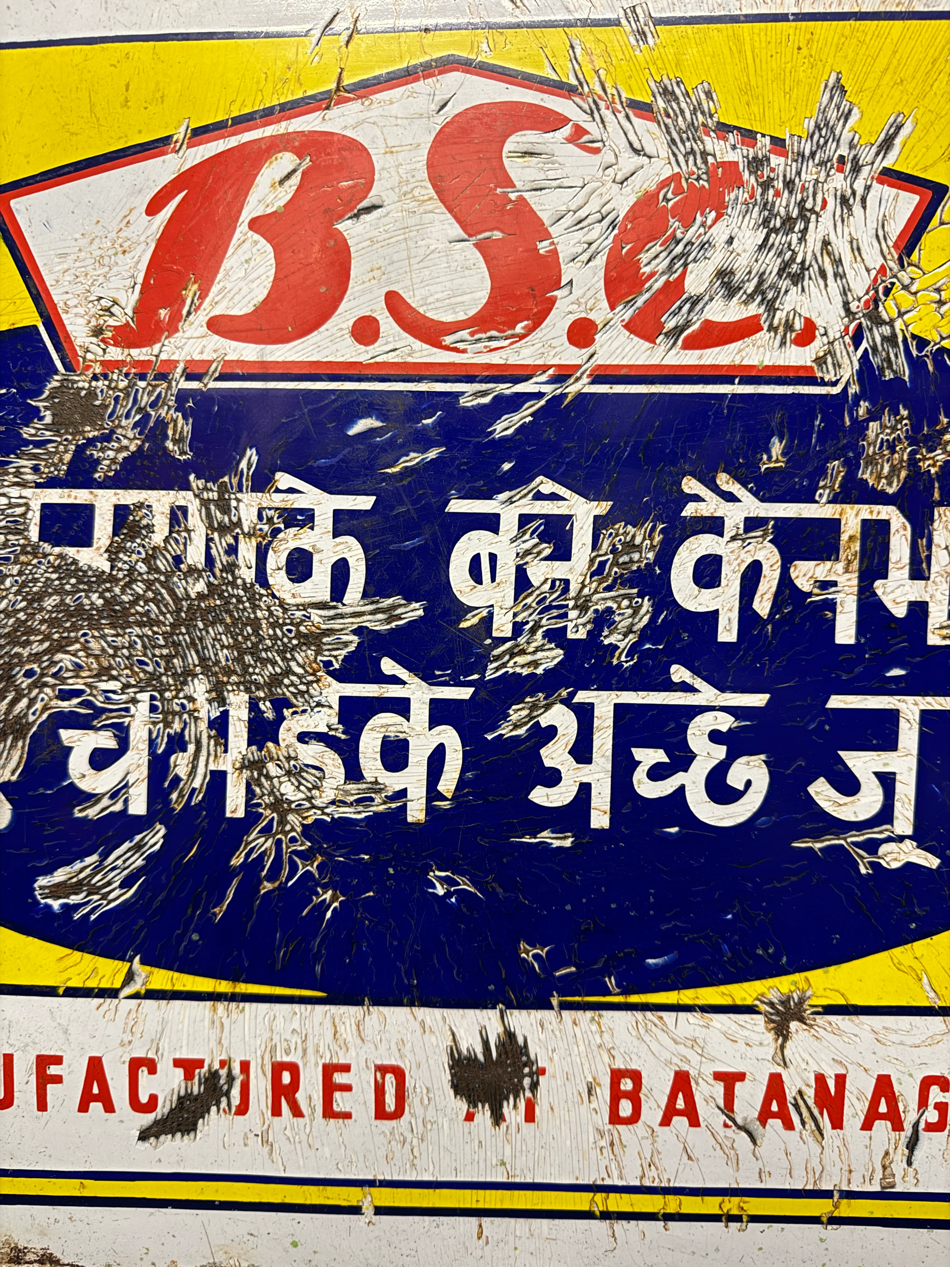 Vintage 1950s Enamel Advertising Sign BSC Batangar Shoe Company