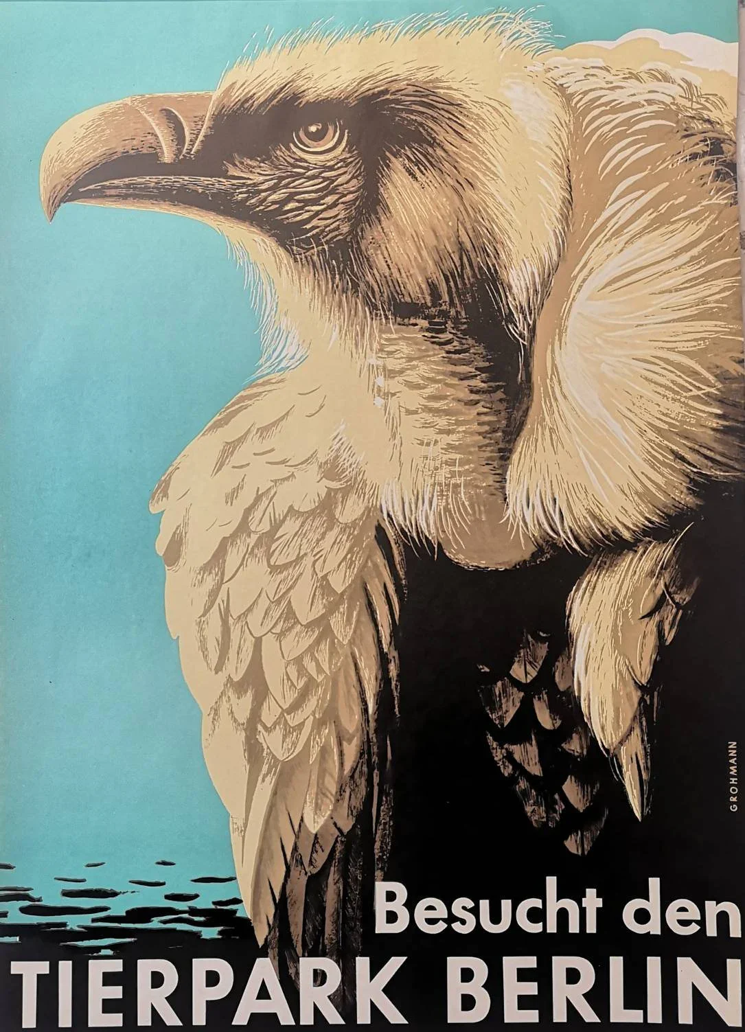 Vintage 1960s Tierpark Berlin Original Zoo Poster Advertising Of A Vulture